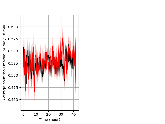 Location in well entire protocol Graph Pvalue = not significant Merged section Pvalue = not significant 30 het vs 18 hom ribgraph_mean_ribbonbout_averhofrac_10min_combo.png