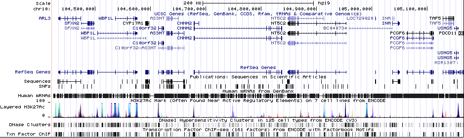ARL3, AS3MT, C10orf32, CNNM2, CYP17A1, INA, NT5C2, PCGF6, PDCD11, SFXN2, TAF5, TRIM8, USMG5, WBP1L