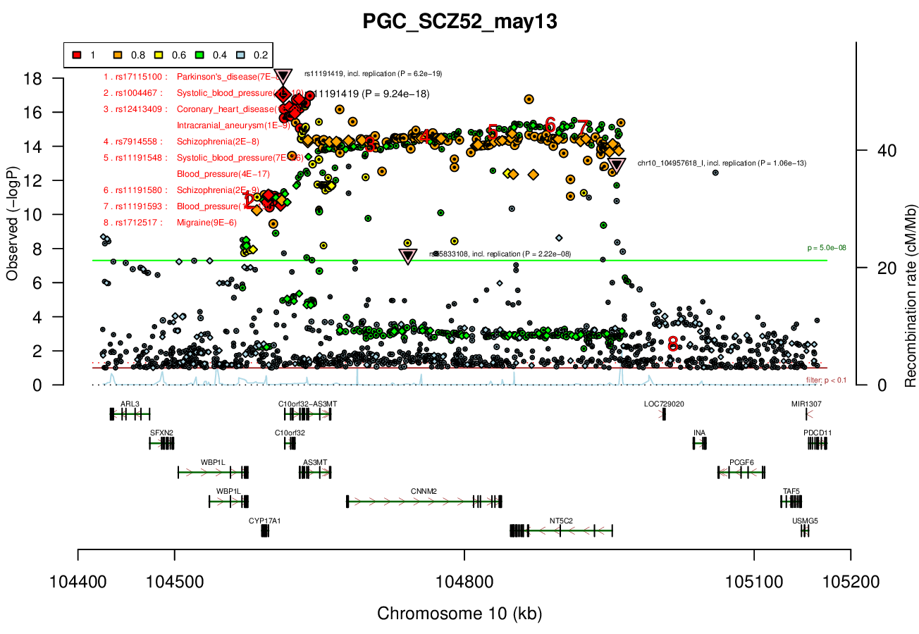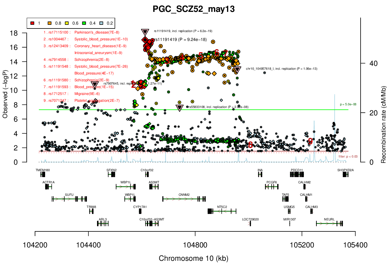 rs11191419 (shown), chr10_104957618_I, rs7907645, rs55833108