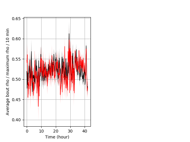 Location in well entire protocol Graph Pvalue = not significant Merged section Pvalue = not significant 26 hethet vs 18 homhom ribgraph_mean_ribbonbout_averhofrac_10min_combo.png